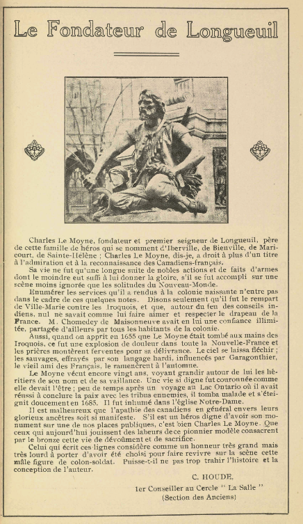 Charles Le Moyne décrit par Camillien Houde (ancien maire de Montréal) en 1912.